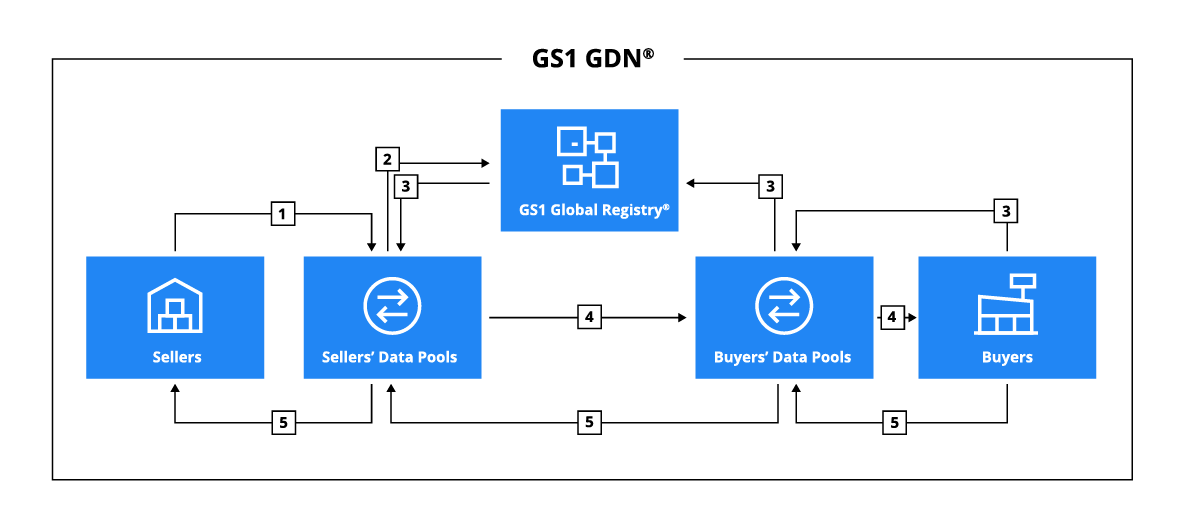 The data pool shares key information, such as product identifiers and company details, with the GS1 Global Registry. This registry acts as a central index for locating data across the GDSN.