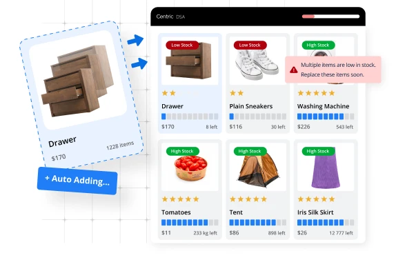 Centric DSA collects product content, pricing, ratings, reviews and stock availability data directly from marketplace APIs. Depth of data depends on each channel’s API, but all captured data is standardized and AI-enriched to be actionable.