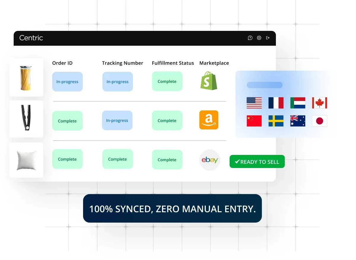 Both. Orders are pulled from marketplaces via API, appear in your ERP/ecommerce system as native orders, and sync back with shipment and tracking data. This ensures you can process, fulfil and track orders at scale without manual entry. It’s one of the key reasons enterprises choose Centric — it covers not just content syndication, but commerce execution.