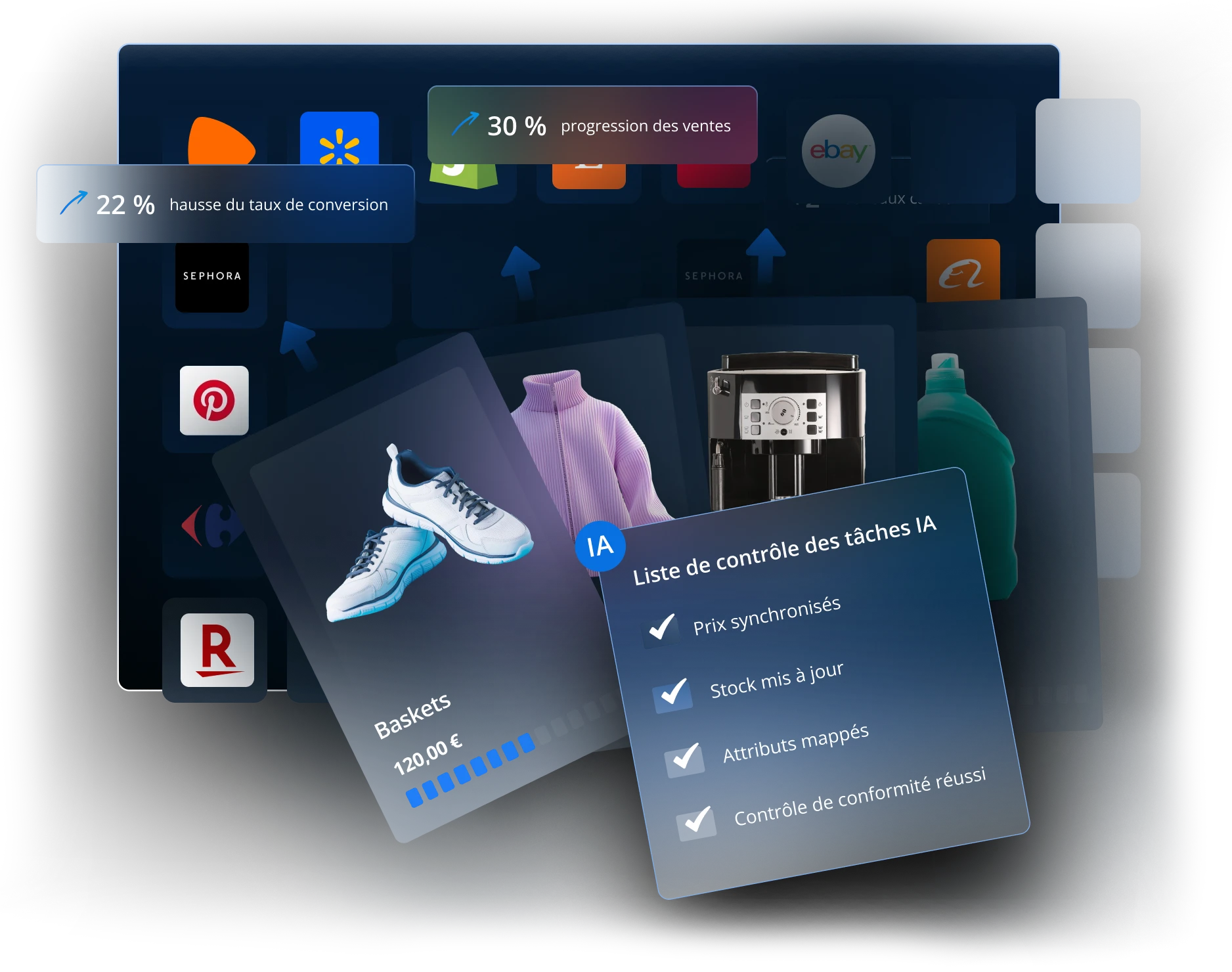 Augmentez les conversions grâce à des prix, des stocks et des attributs de produits précis sur chaque canal.