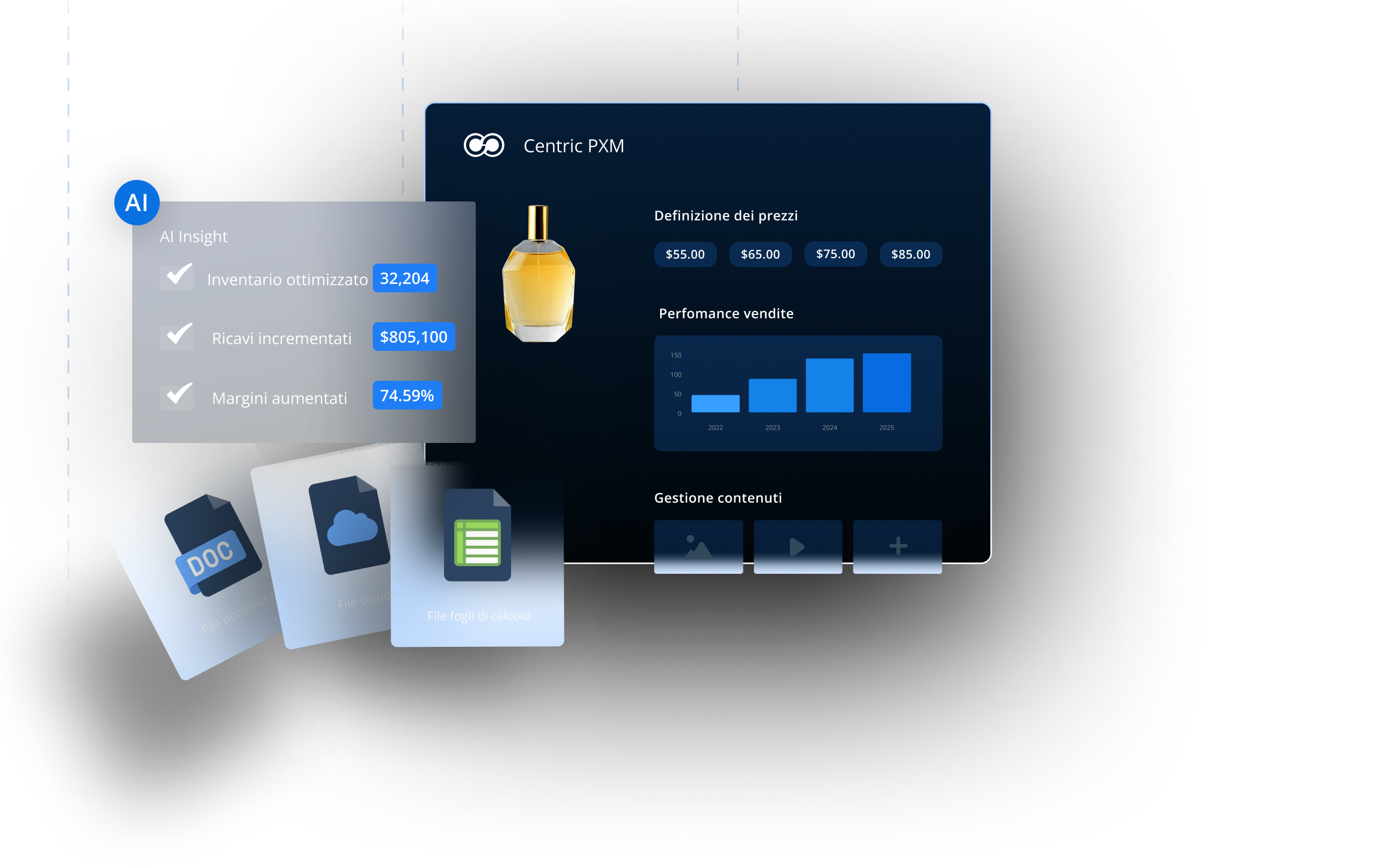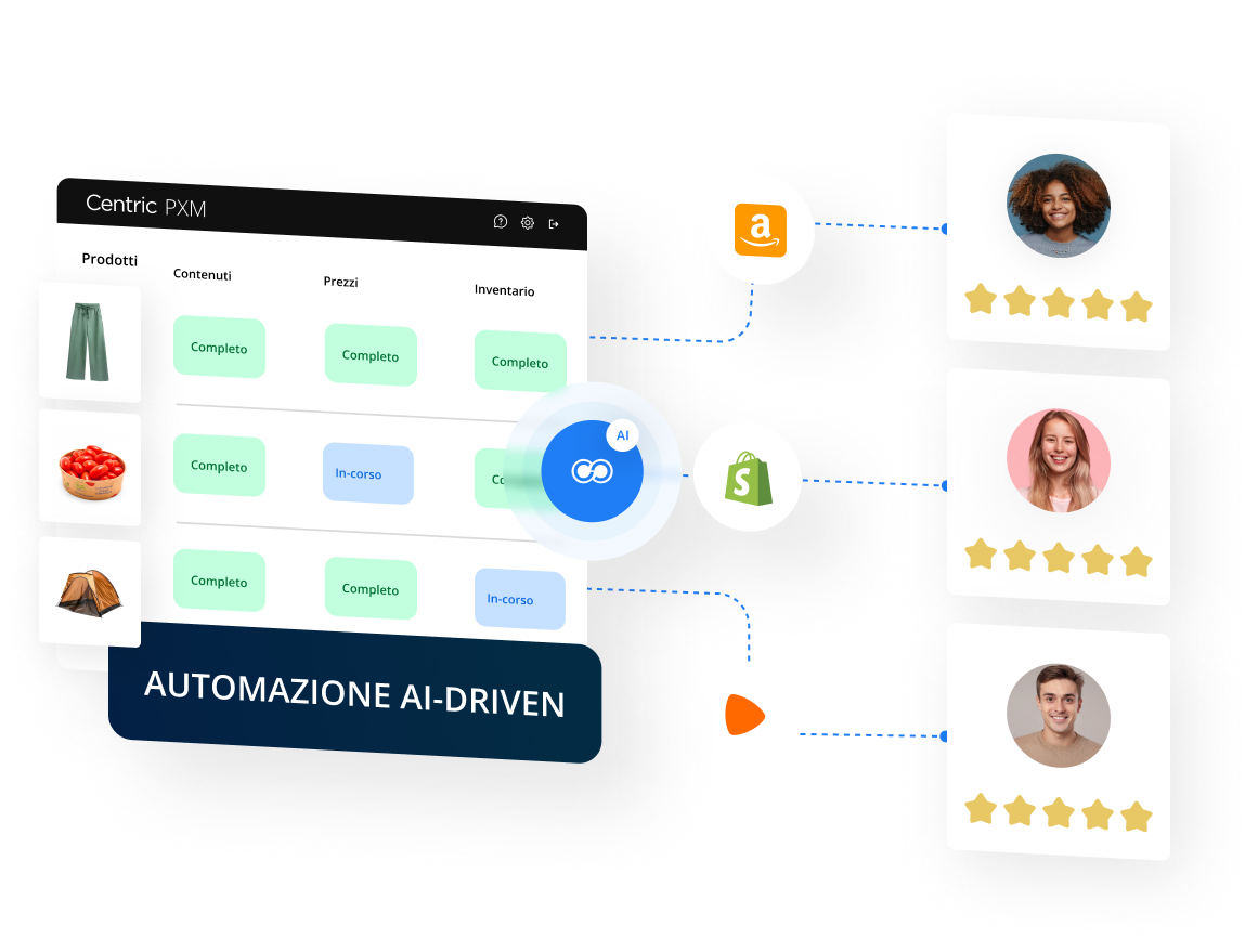 Contenuti di prodotto, automazione AI e insight. Veloci, accurati e ottimizzati.