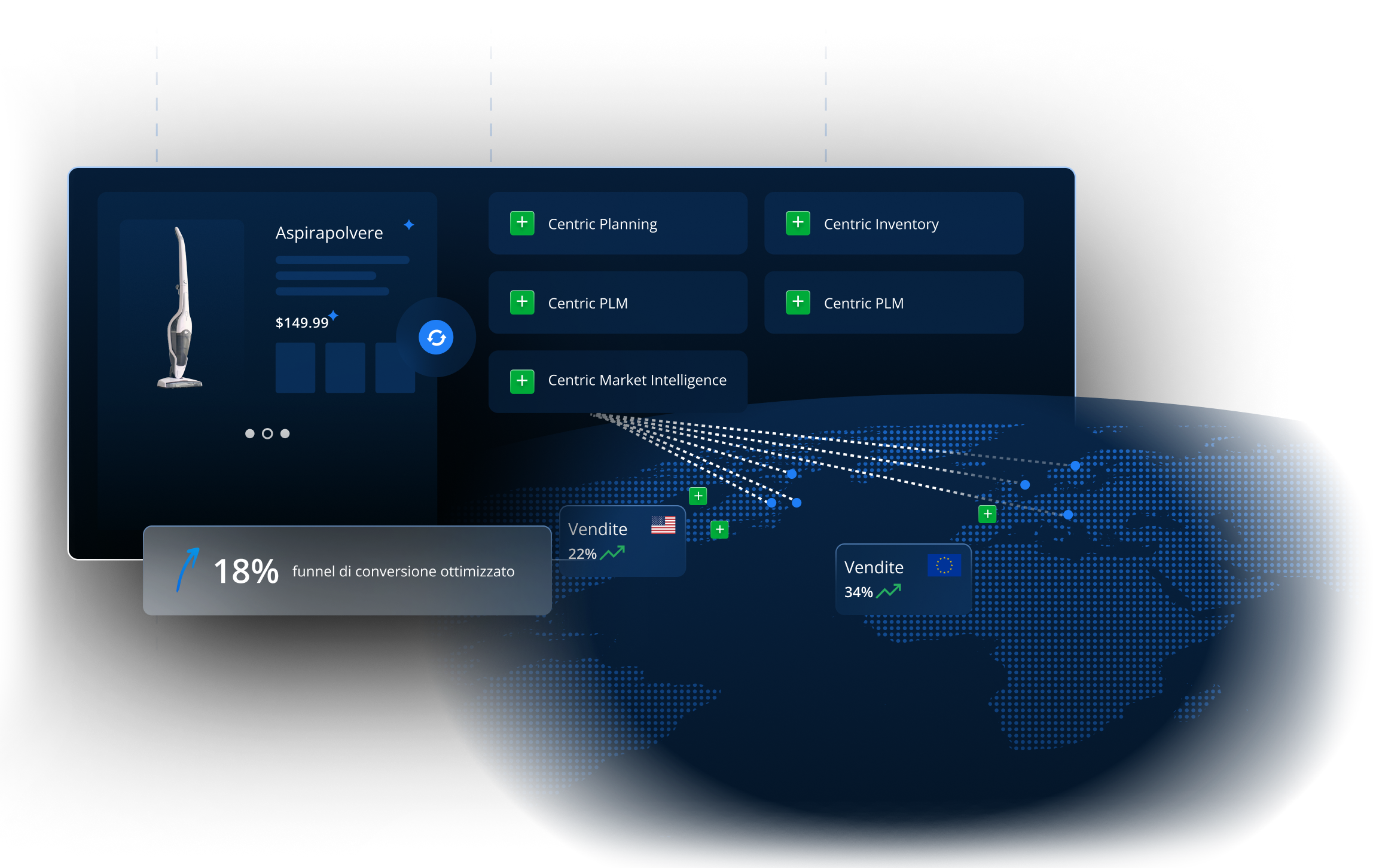 Collega le attività di pianificazione prodotto in ogni fase — dalla pre-season alla fine stagione, dall’ideazione allo sviluppo, fino al sourcing e alla vendita — con le soluzioni Centric: Market Intelligence, Planning, PLM e Pricing & Inventory Optimization. Un approccio continuo e integrato, pensato per sostenere la crescita.